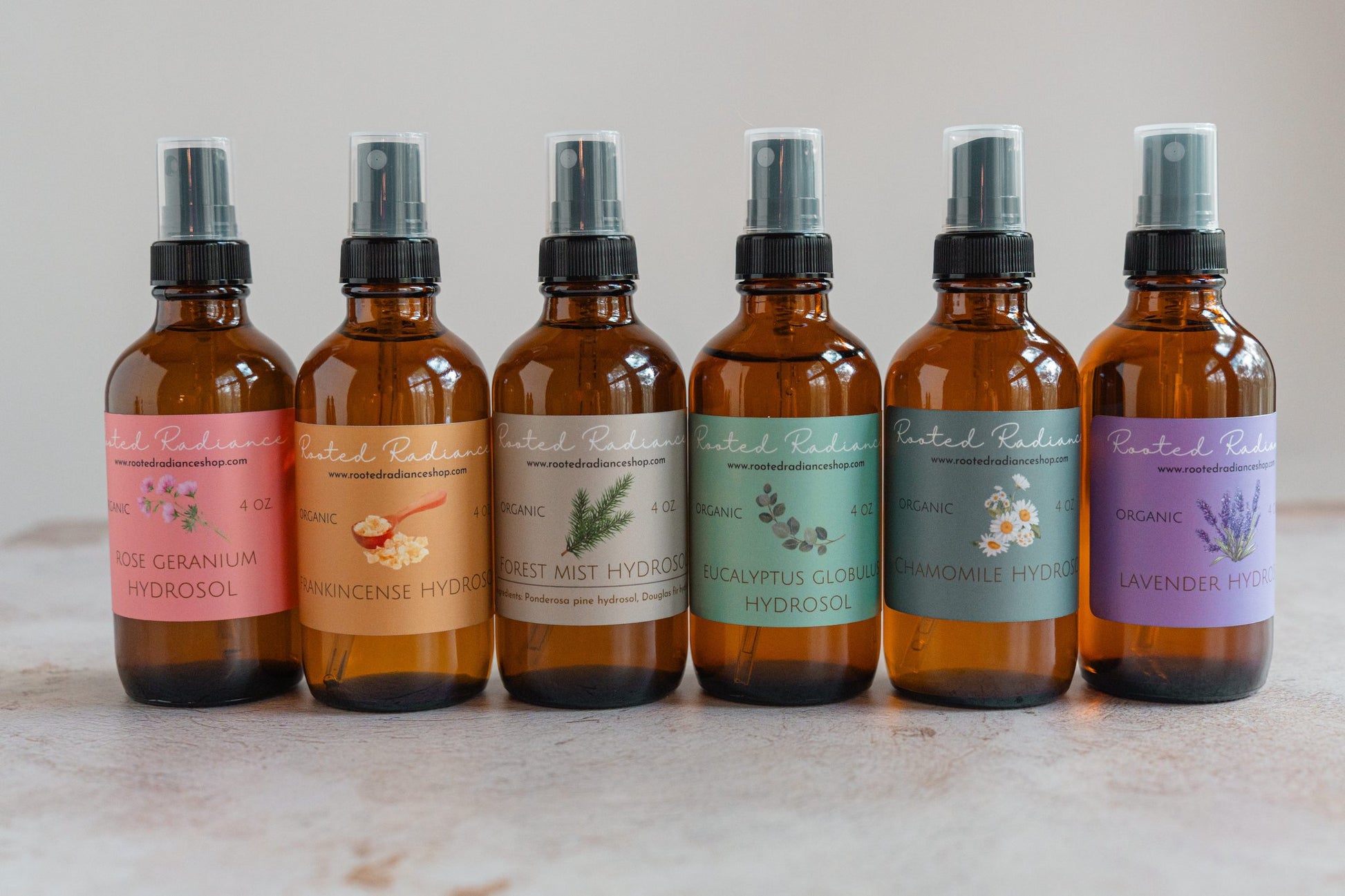 Each hydrosol is in a 4 oz. amber glass spray bottle and should be used within 6 months of purchase.